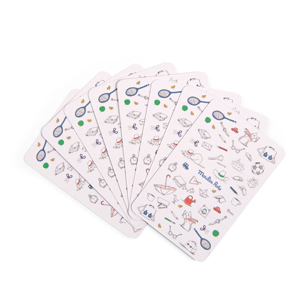 Our favourite characters are hiding in pairs! All the cards make a pair except the Mistigri card with the cheeky little cat and dog. To keep things positive, this time the winner is the player who finishes the game with the Mistigri card! Measures approximately 12.5 x 8.5 cm. For ages 4+.