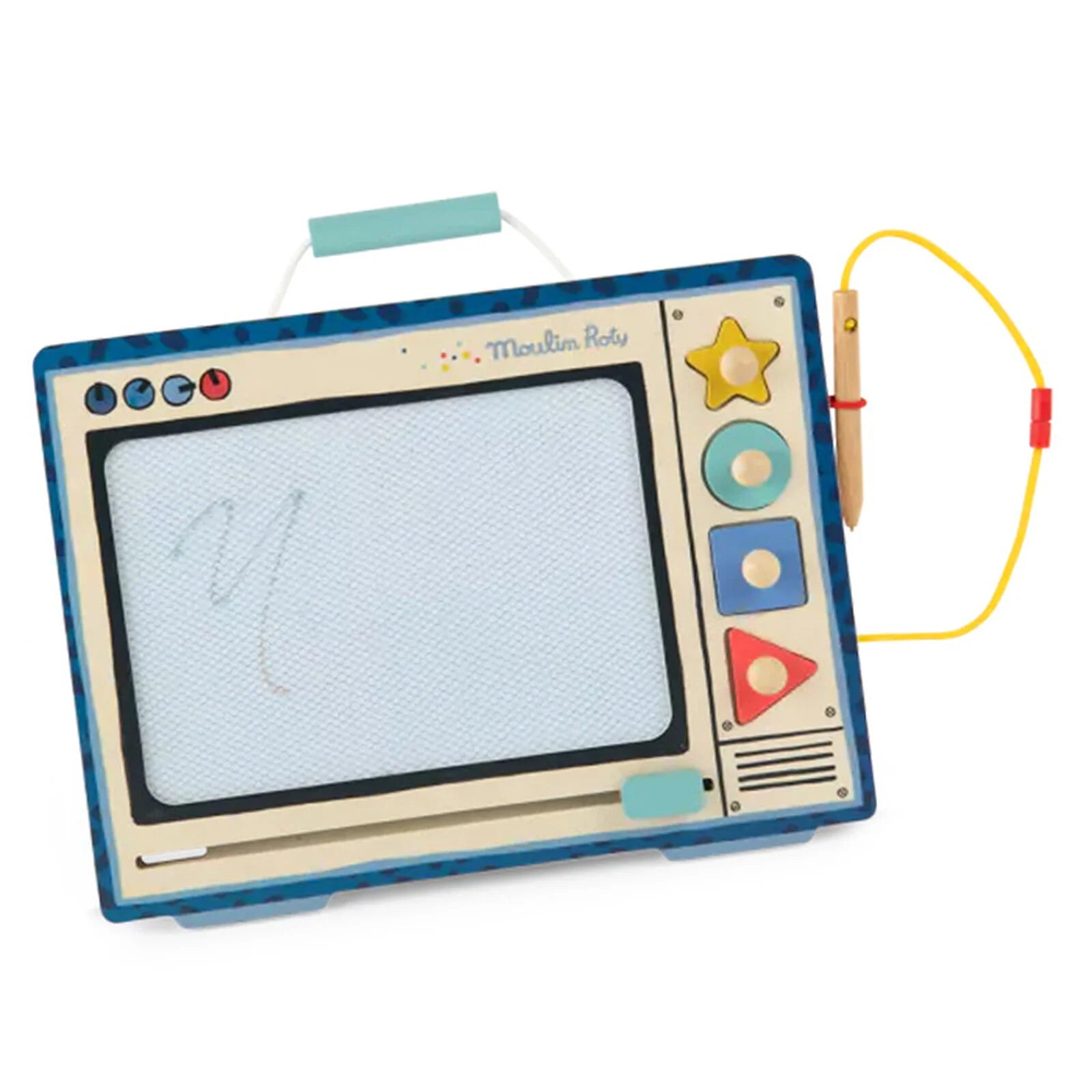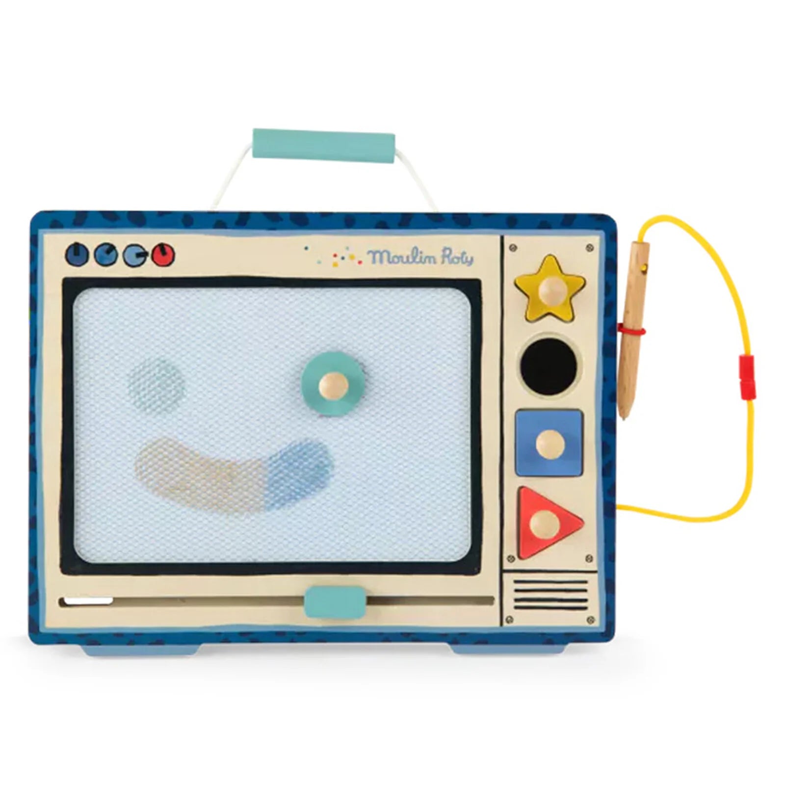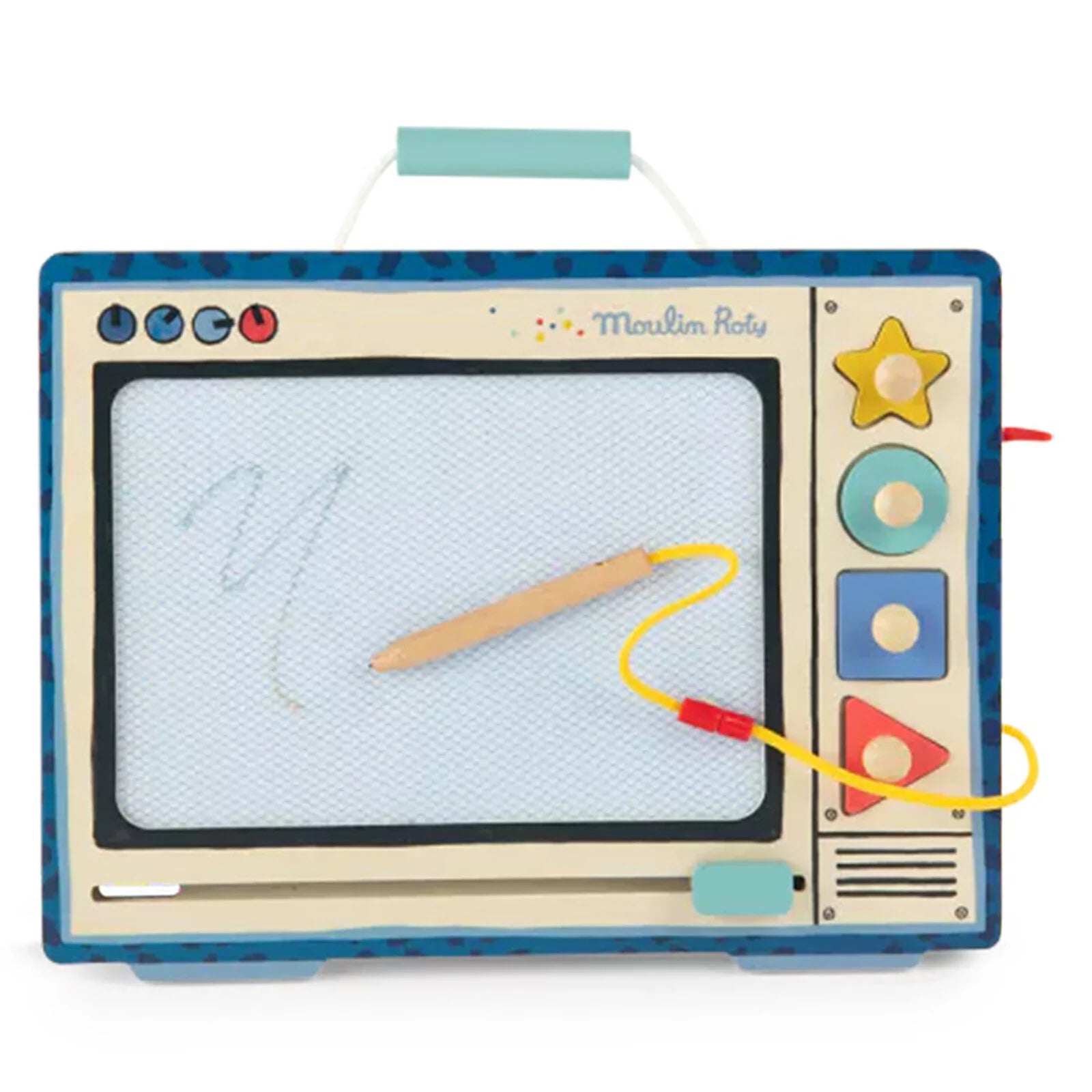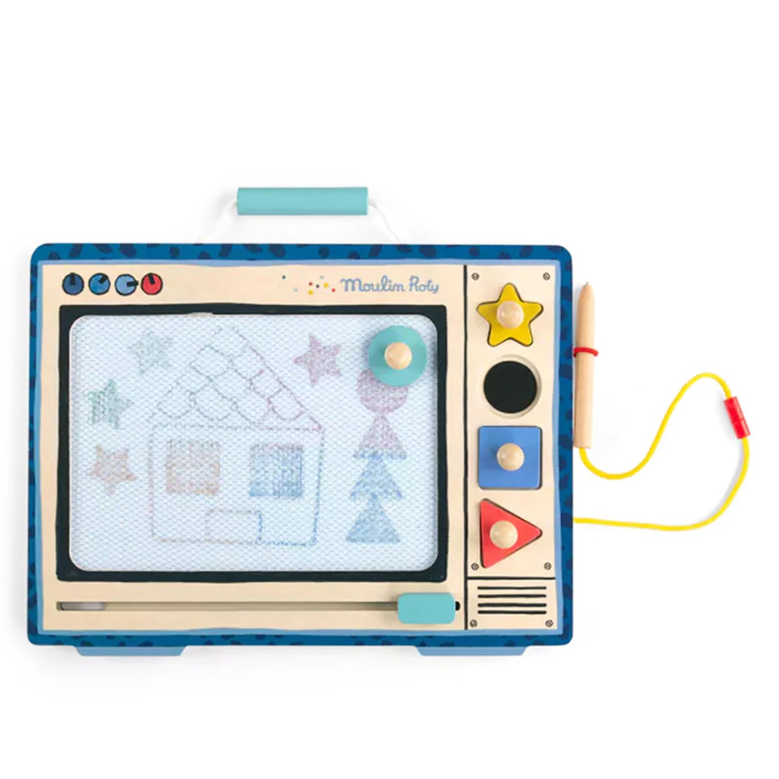 Le télé ardoise magnétique Puce & Pilou laisse place à la créativité. Muni d'une réglette et de tampons, il offre une multitude de possibilités pour dessiner à l'infini. Tout pour devenir un véritable artiste !