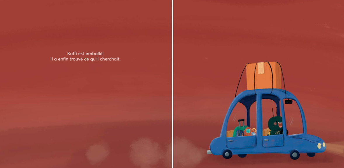 Koffi est un petit coléoptère déterminé à se trouver une nouvelle maison. Et celle qu’il a dénichée lui semble parfaite en tout point! Mais des bruits étranges, du vent et des infiltrations d’eau font leur chemin jusqu’à lui, l’empêchent de poser ses boîtes et ses meubles. Où a-t-il donc atterri?