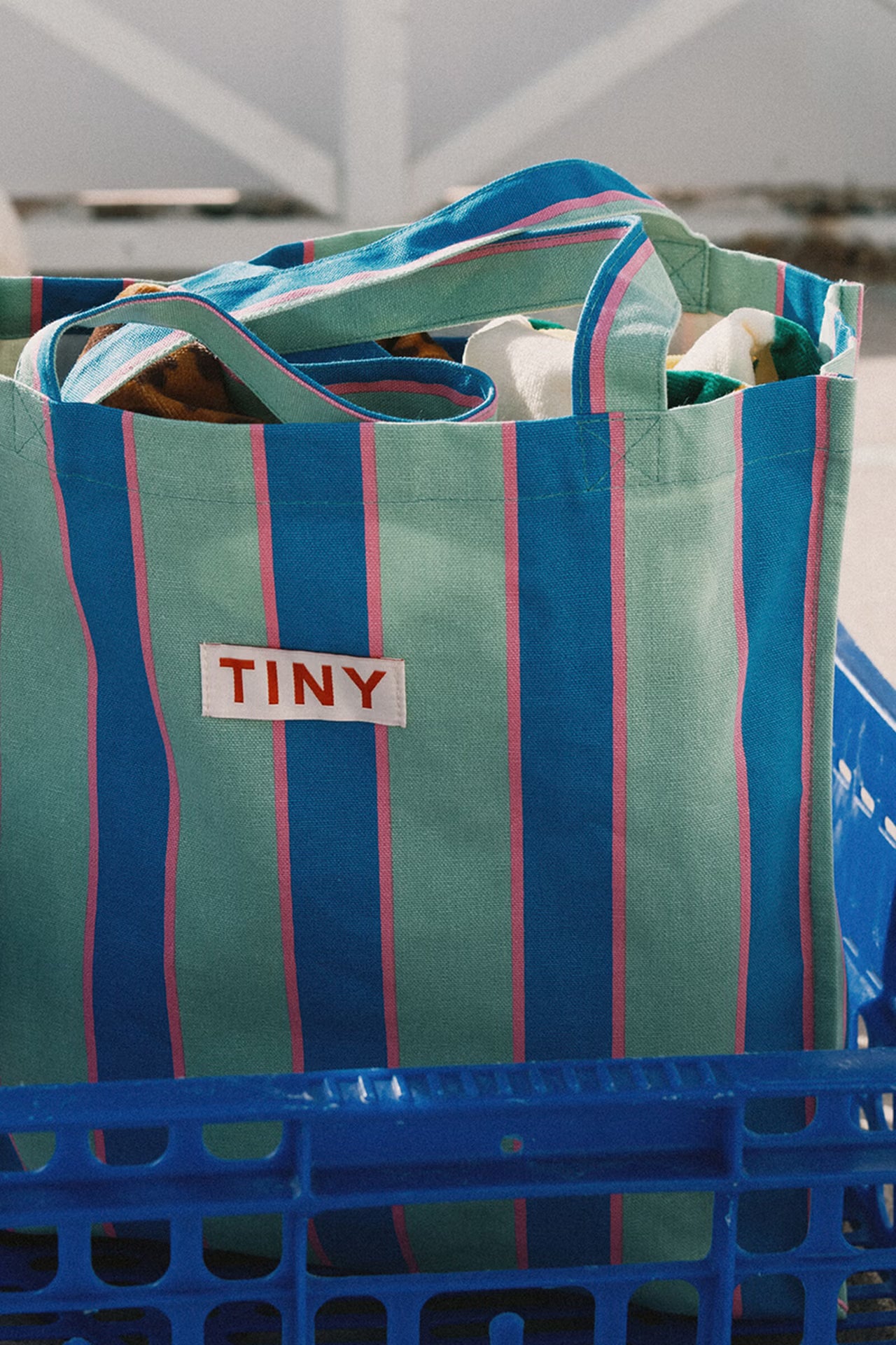 Confectionné en tissu robuste à rayures rétro sur fond émeraude, ce cabas est doté de larges anses pour un porté main ou épaule confortable. Son intérieur spacieux vous permettra d'emporter tous vos essentiels du quotidien. Le logo TINY, discrètement placé en haut du sac, lui confère une touche distinctive.
