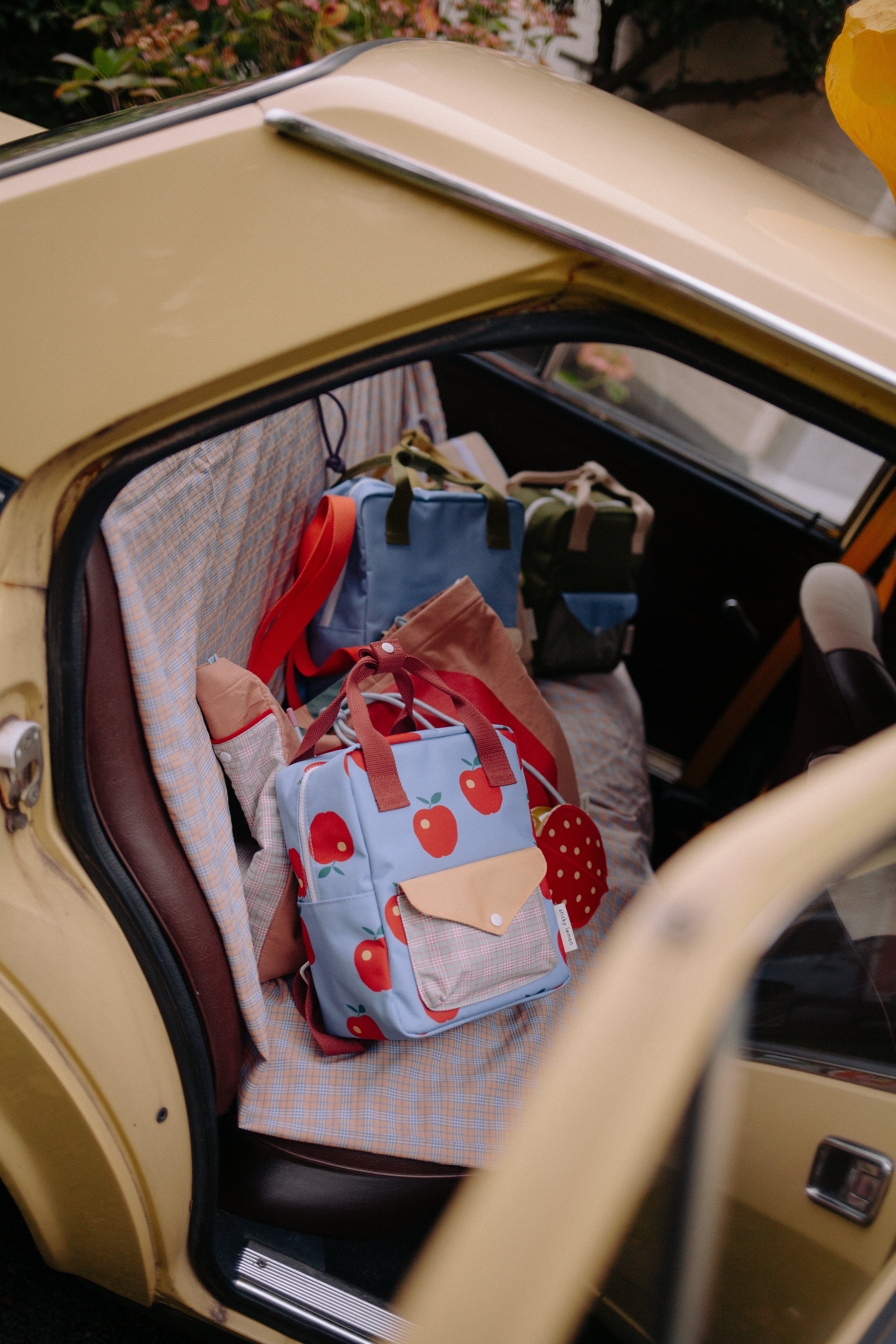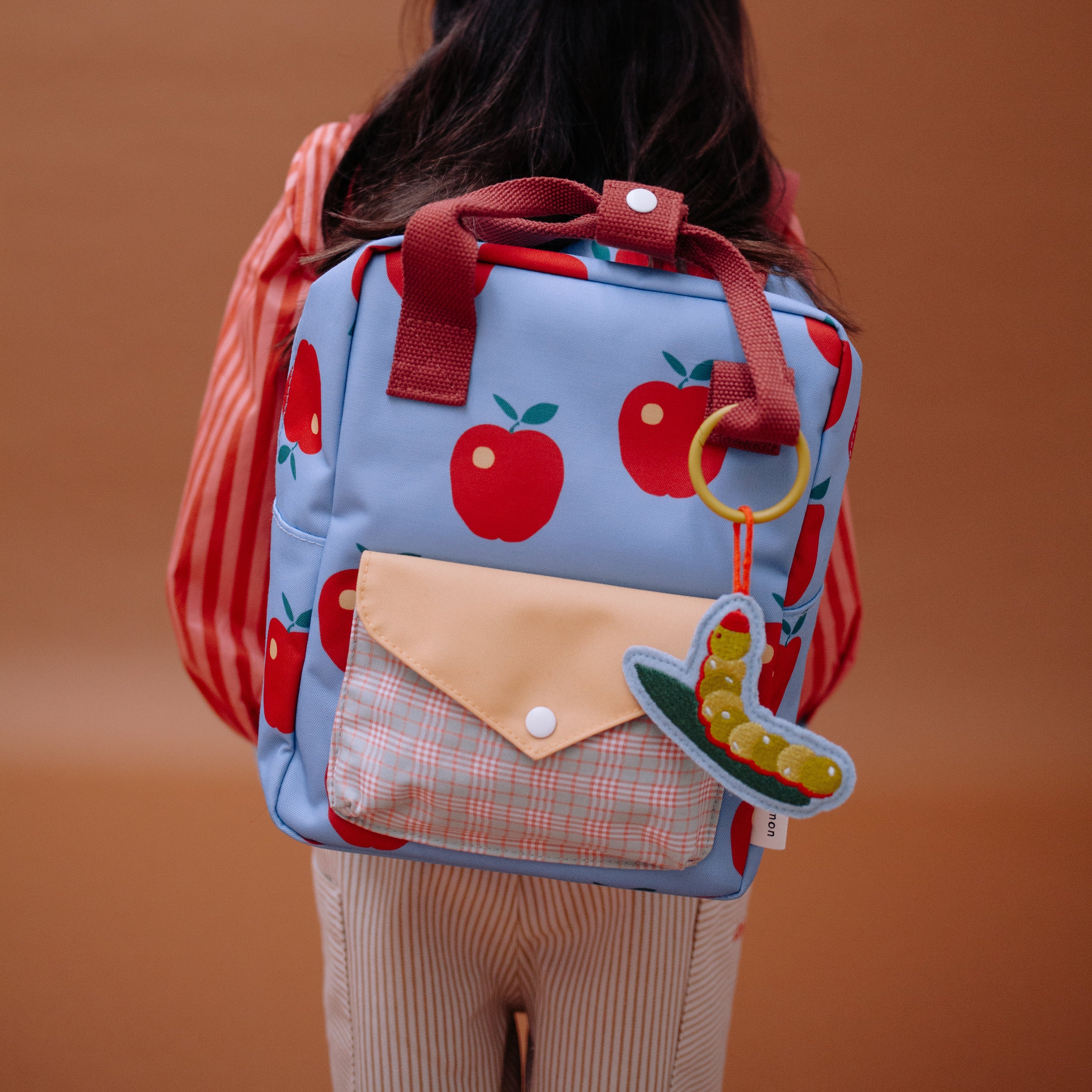 Les illustrations rendent ce sac unique ! Et avez-vous remarqué le porte-clés brodé inclu ? Il possède une poche supplémentaire à l'avant, une doublure imperméable ornée d'un motif dessiné à la main et des bretelles réglables. À l'intérieur, vous trouverez un élastique faisant office de porte-bouteille et une poche sur toute la longueur du dos, fermée par un velcro. Une étiquette pour votre nom est également prévue.
