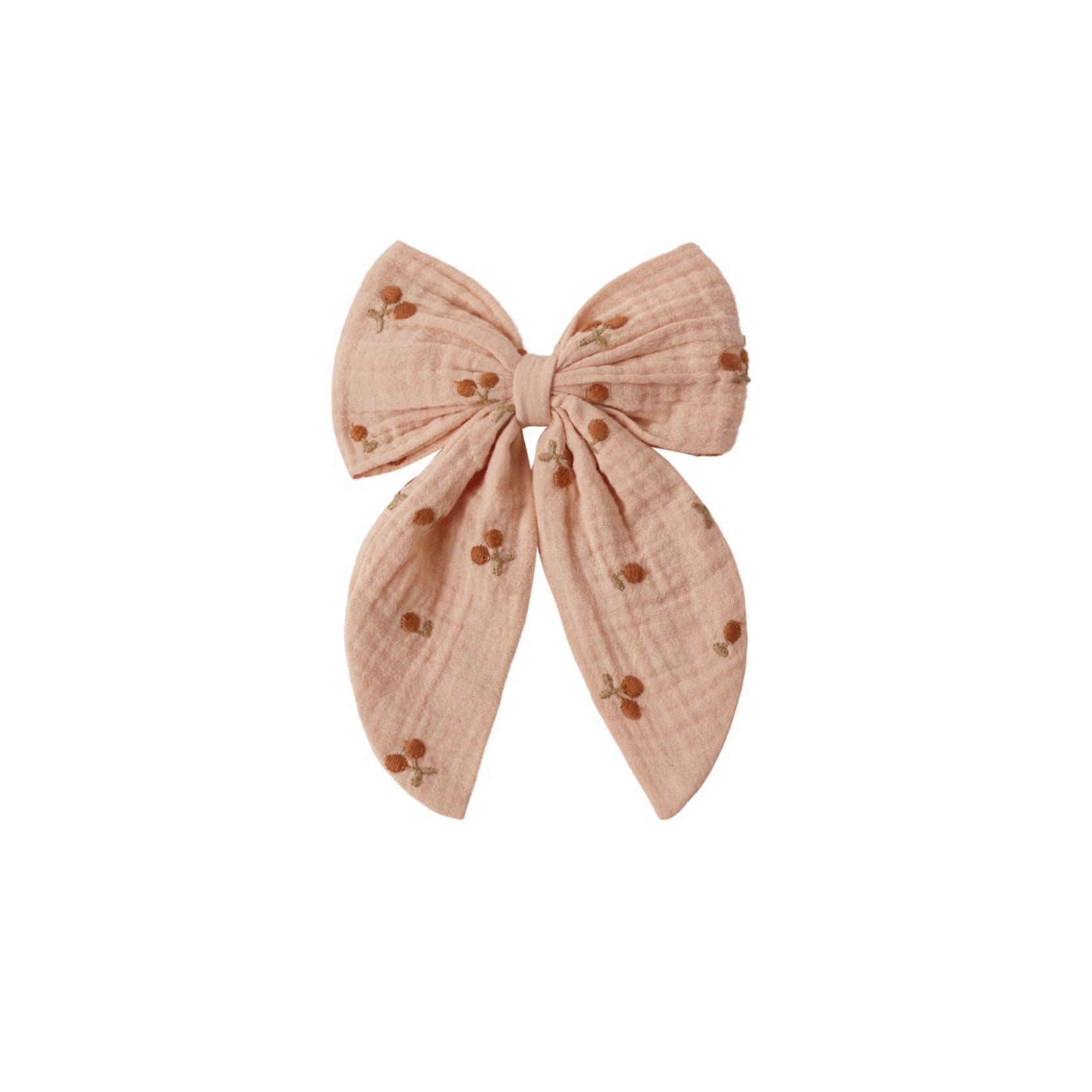 Noeud à cheveux surdimensionné attaché à une pince crocodile en or rose.