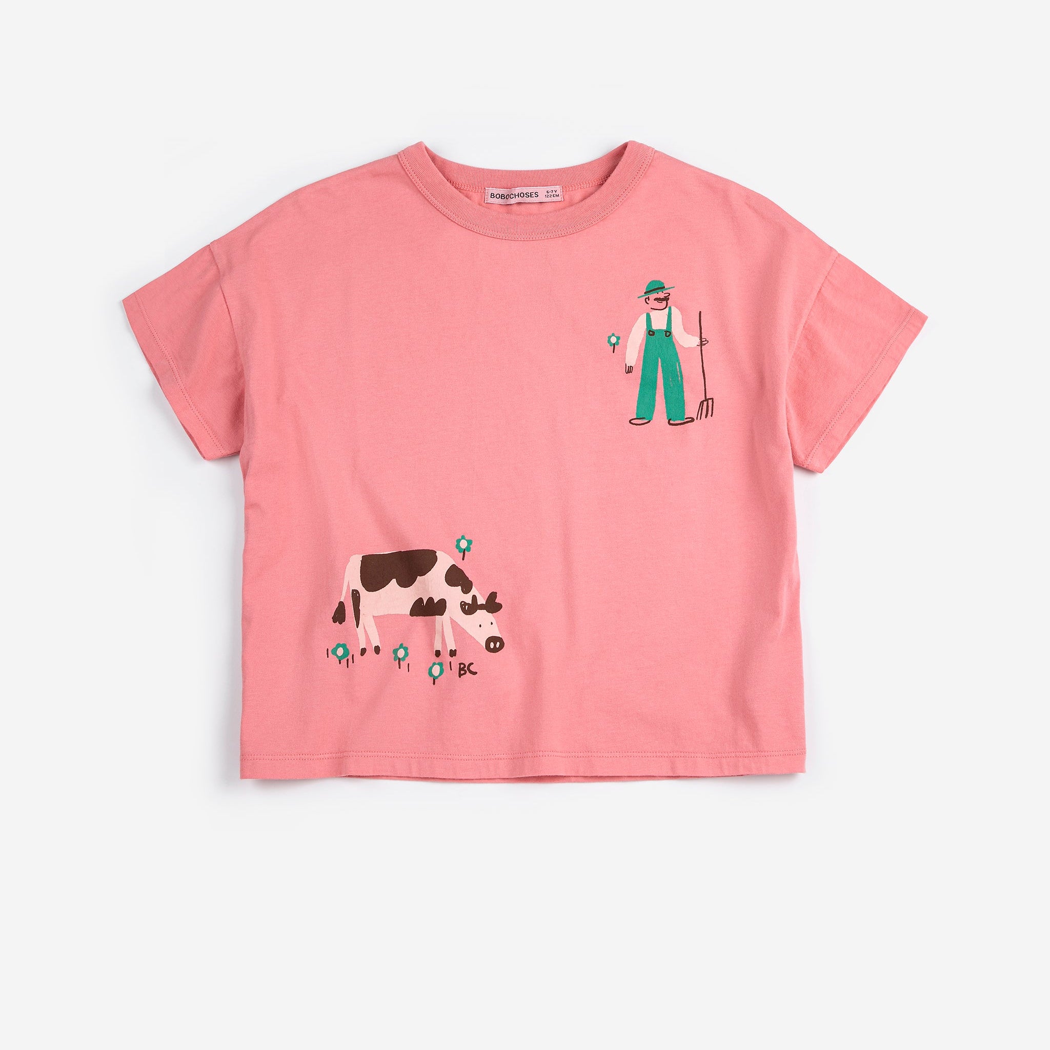 T-shirt rose. Modèle à manches courtes, coupe ample et col rond.