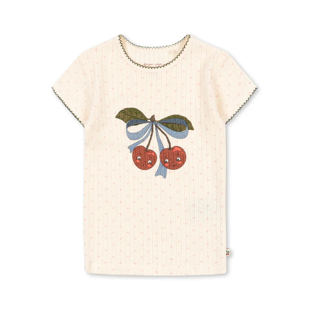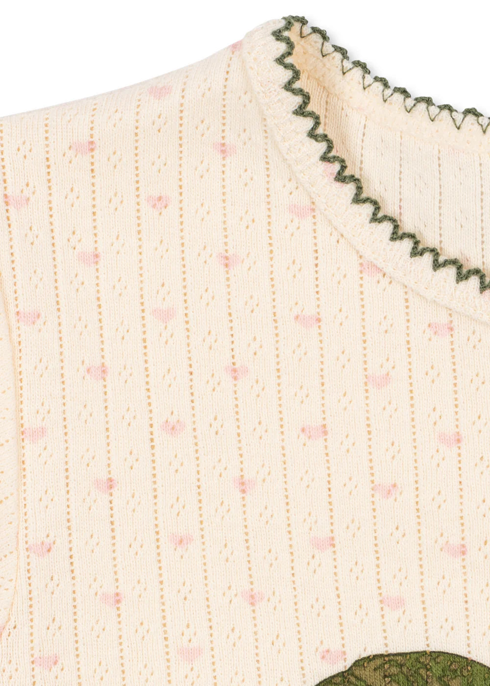 T-shirt basique doux, composé à 100 % de coton biologique, orné d'un motif ajouré décoratif et d'un ourlet picot.