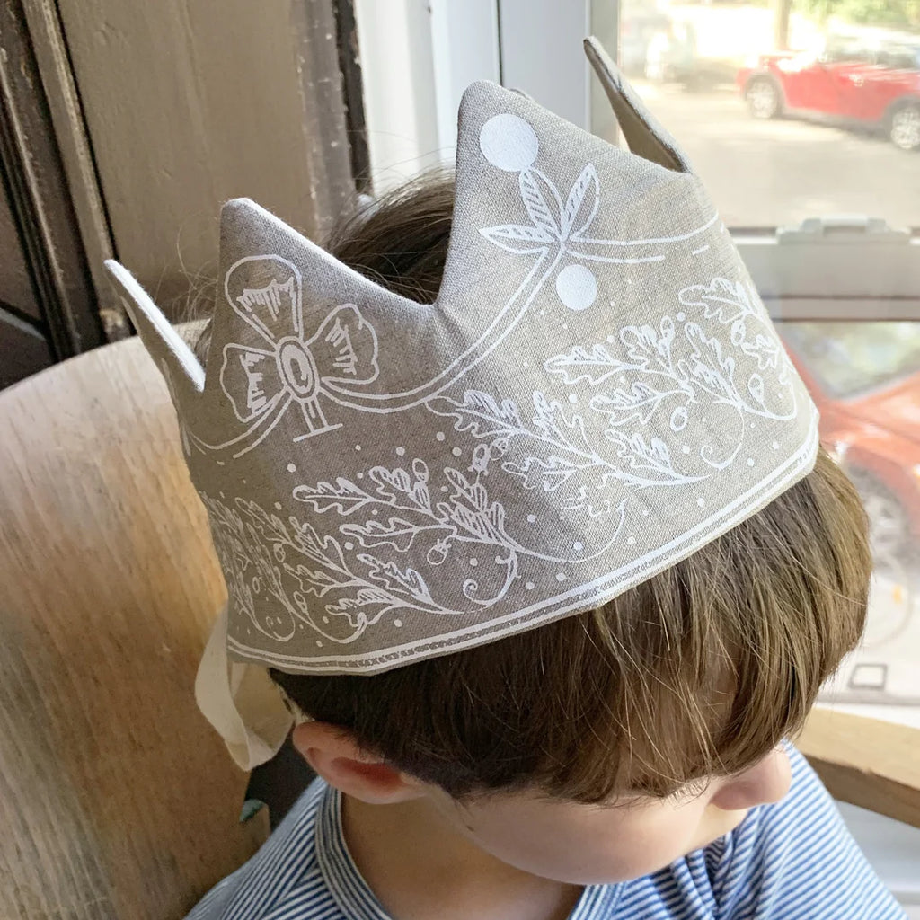 Classic and timeless linen crown. Fits all heads. Attaches with cotton cords.
