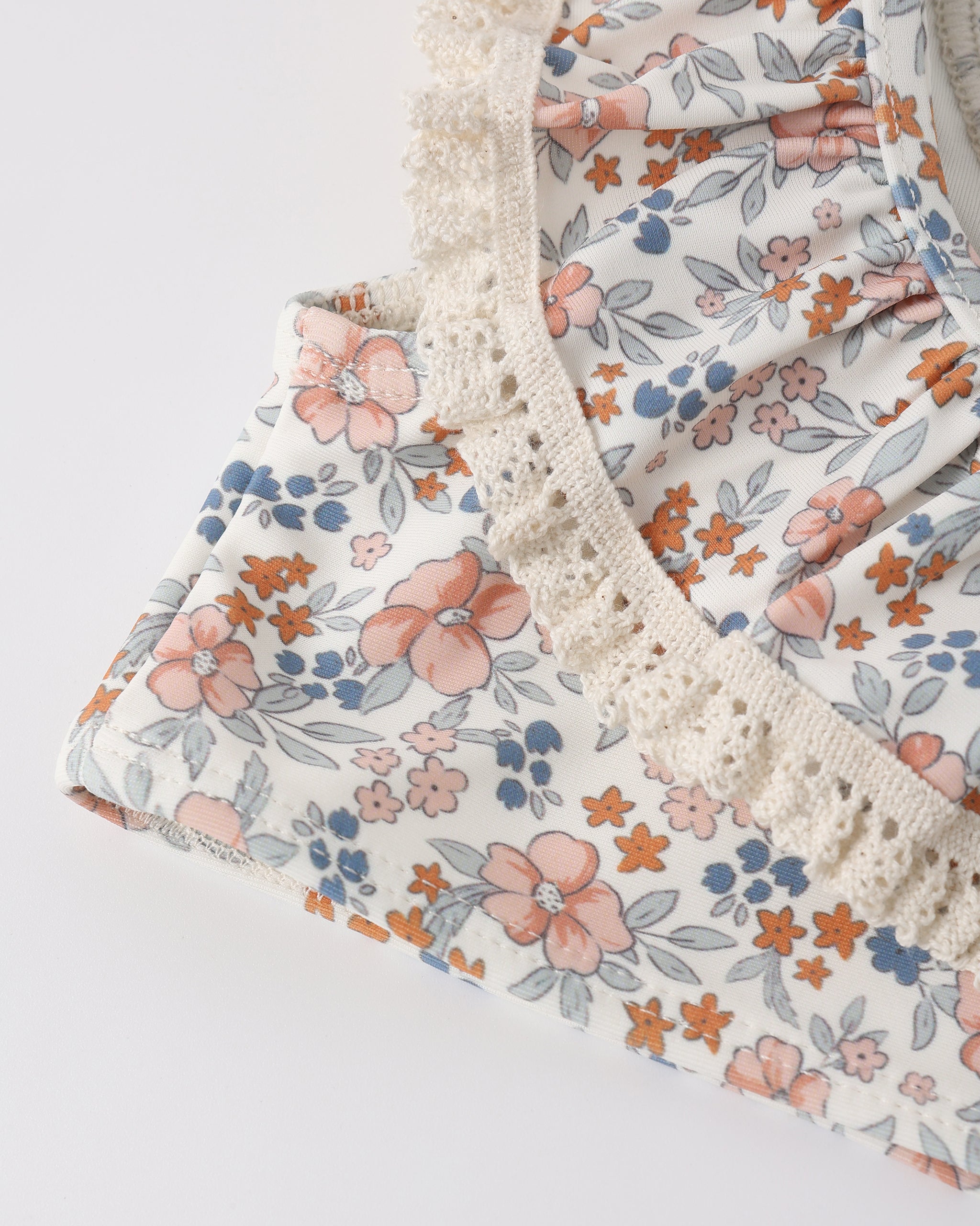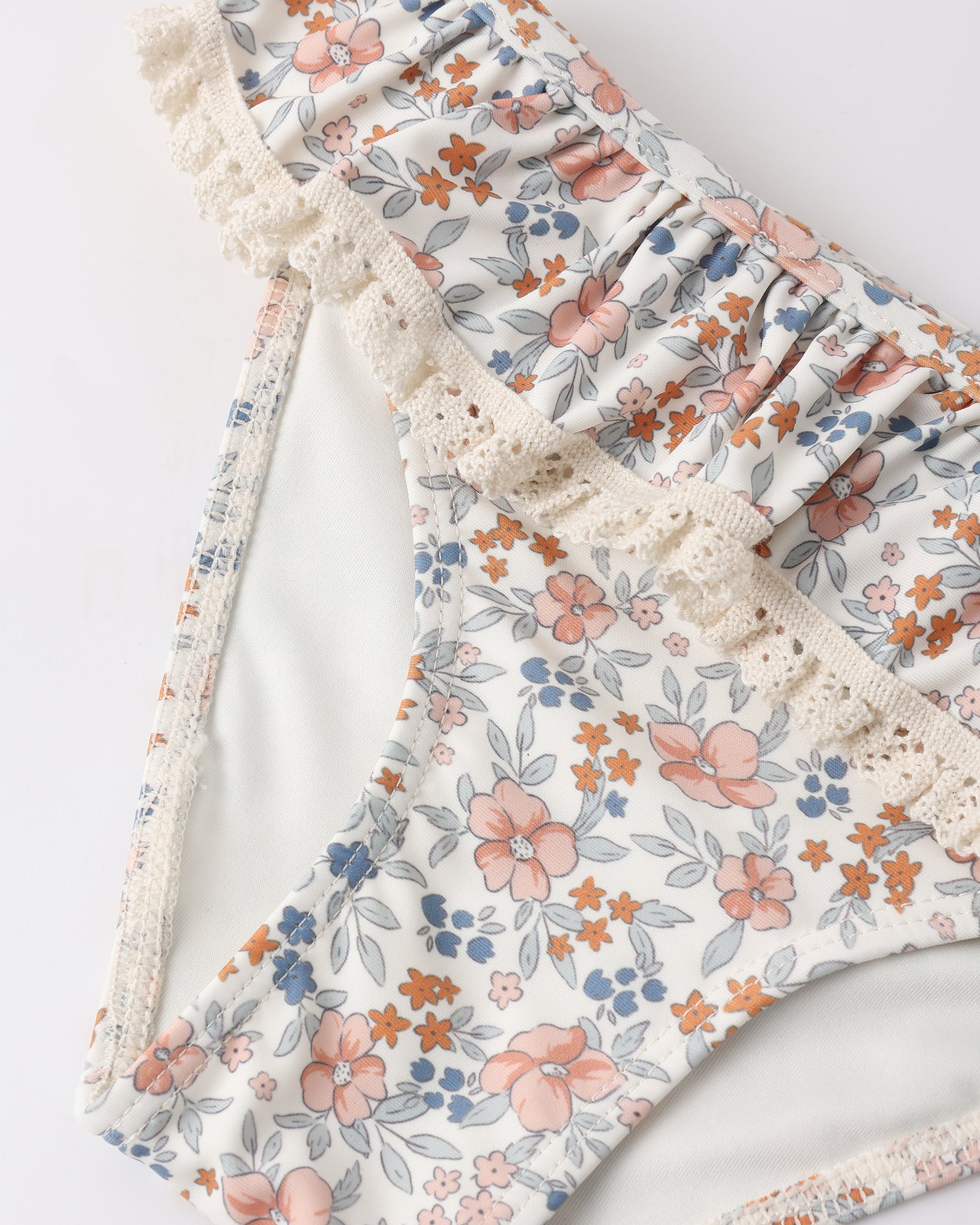 Notre bikini Margot est orné d'un ravissant col et d'une taille à volants rehaussés de finitions en crochet, pour une touche d'élégance à votre maillot de bain.