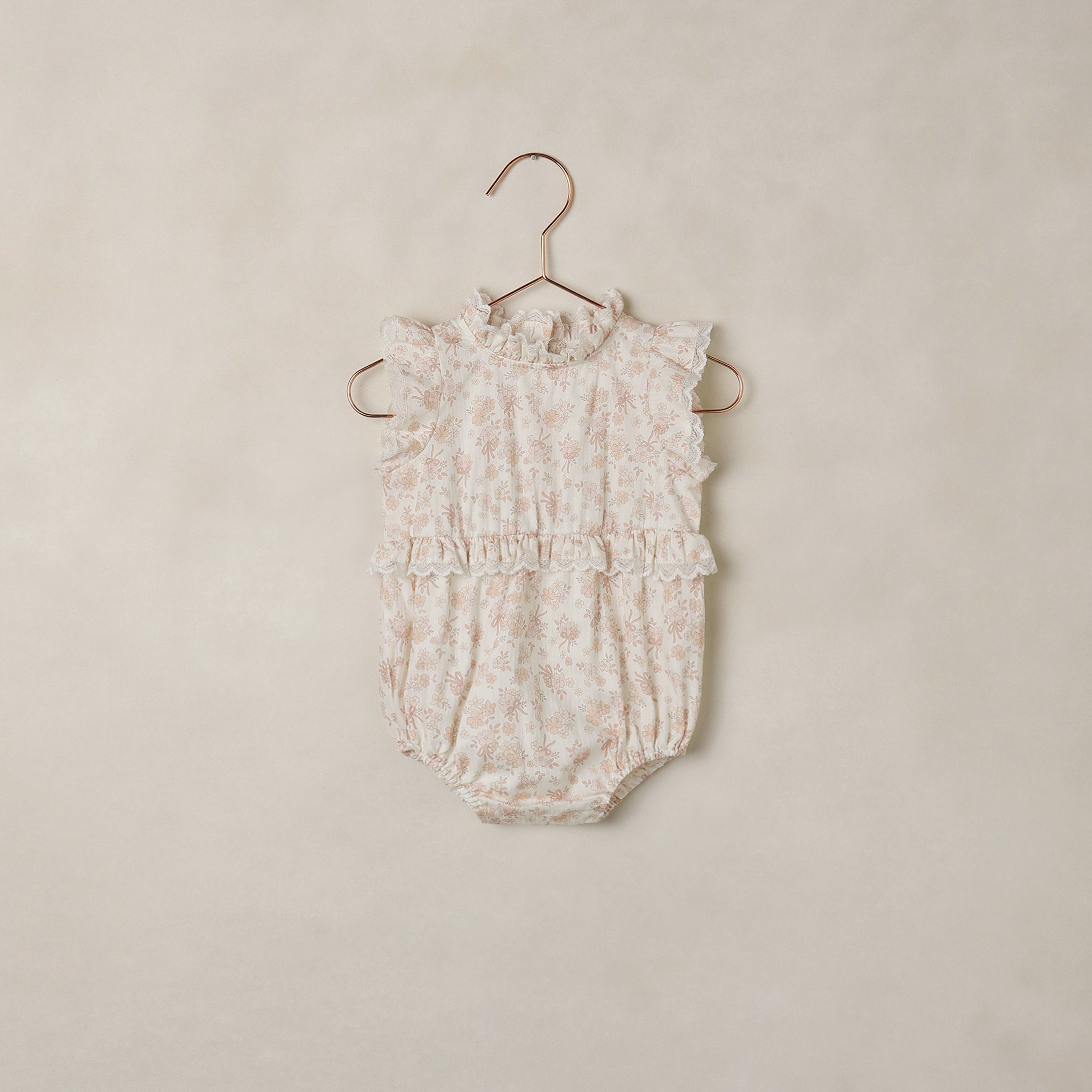 Tous nos détails préférés pour cette barboteuse dotée de volants délicats et d'une bordure en dentelle. La fermeture à quatre boutons à l'arrière, les boutons-pression en dessous et les ouvertures élastiquées pour les jambes permettent un habillage facile. Coordonnez-la avec sa grande sœur dans la robe Alice pour un look assorti des plus mignons.