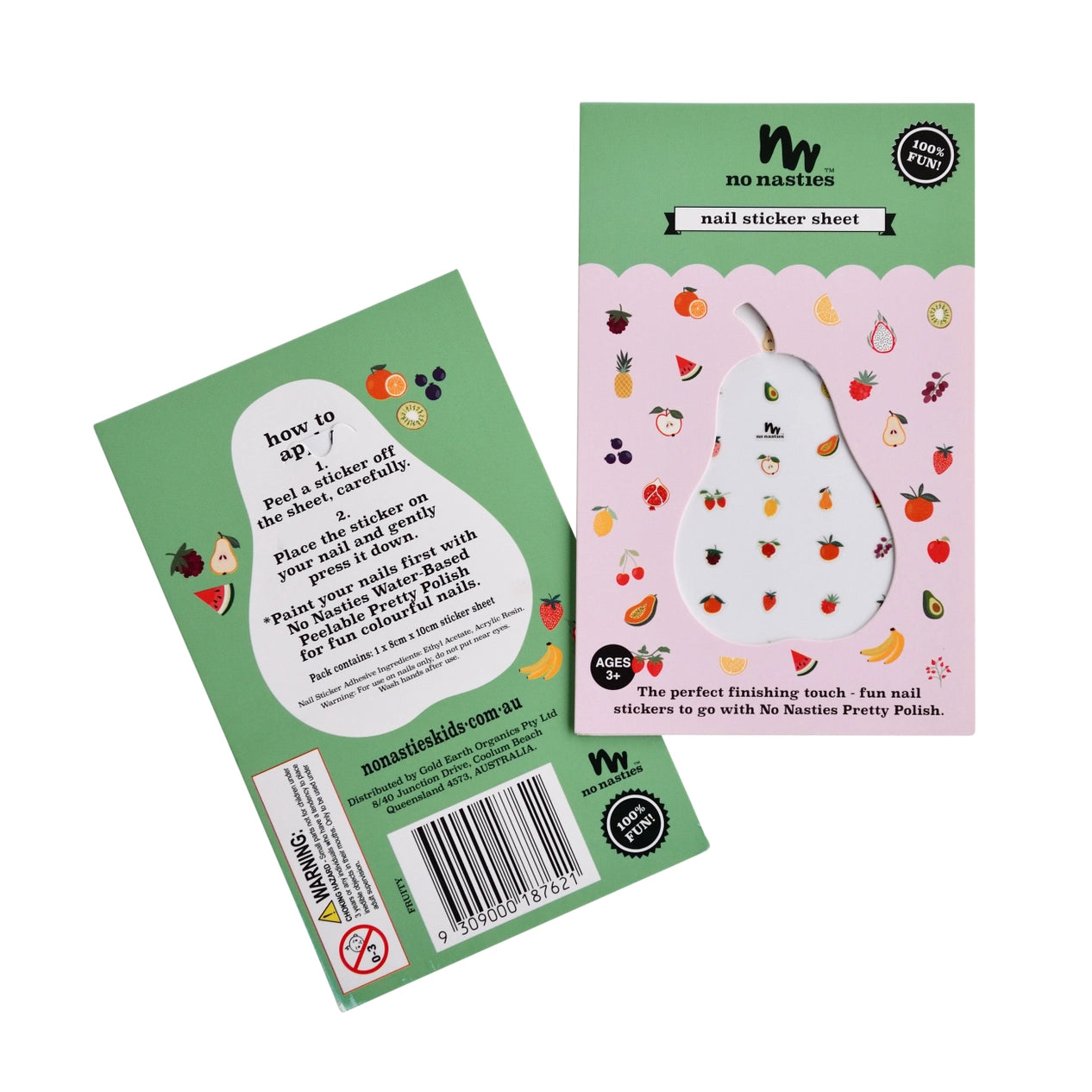 Autocollants pour ongles No Nasties Kids emballés individuellement.