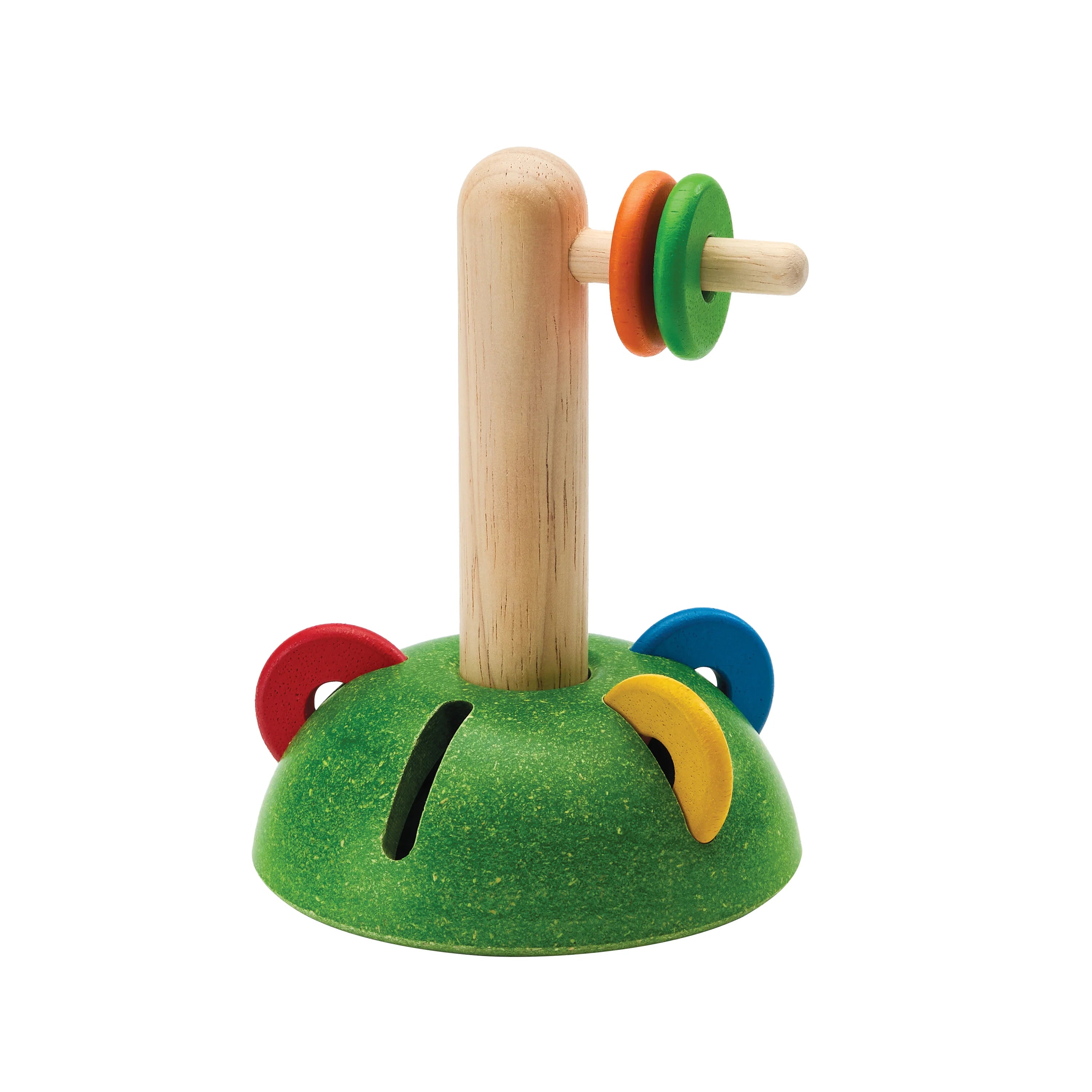 Fabriqué de manière durable en Thaïlande à partir de bois d'hévéa sans produits chimiques, de colle non toxique, de pigments organiques et de teintures à base d'eau. Ce jeu comprend : 1 base en bois avec un support et 5 anneaux colorés.