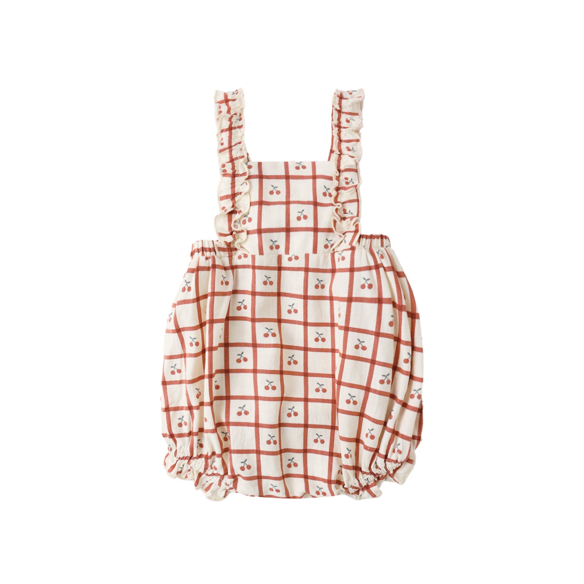 Elle arbore notre joli imprimé à carreaux cerises sur un coloris naturel.