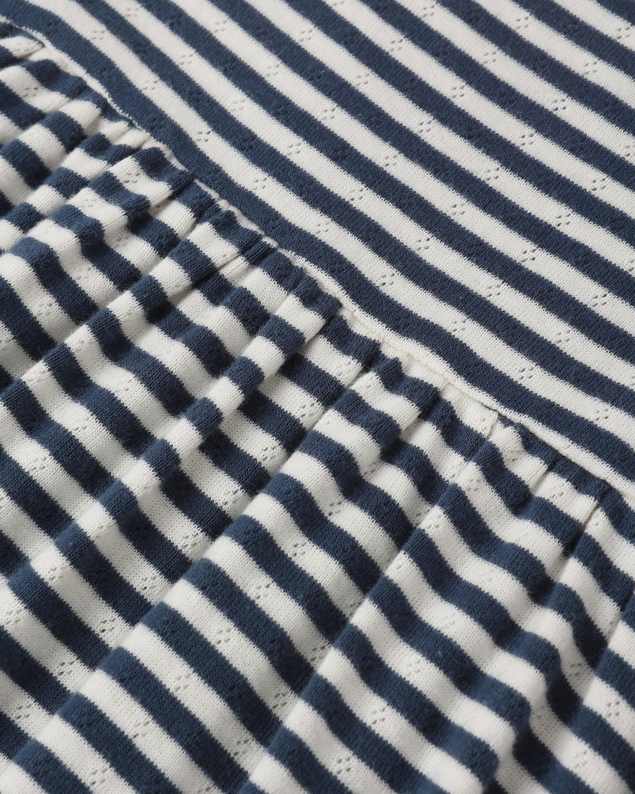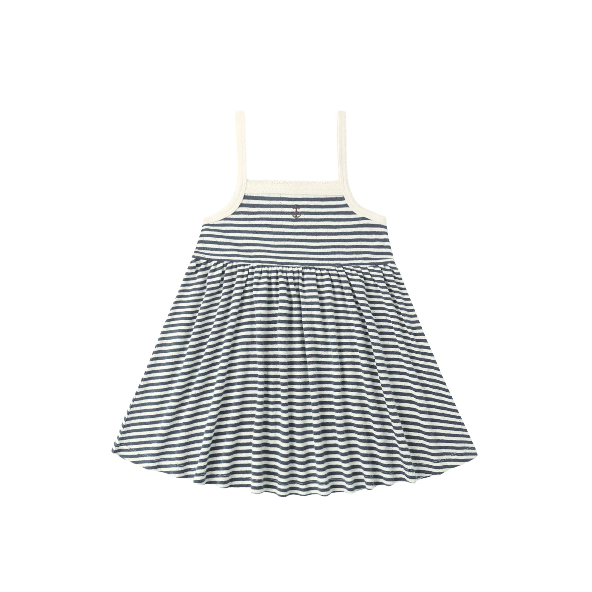 Elle arbore notre motif rayé marine. Un look estival et décontracté, parfait pour la côte.
