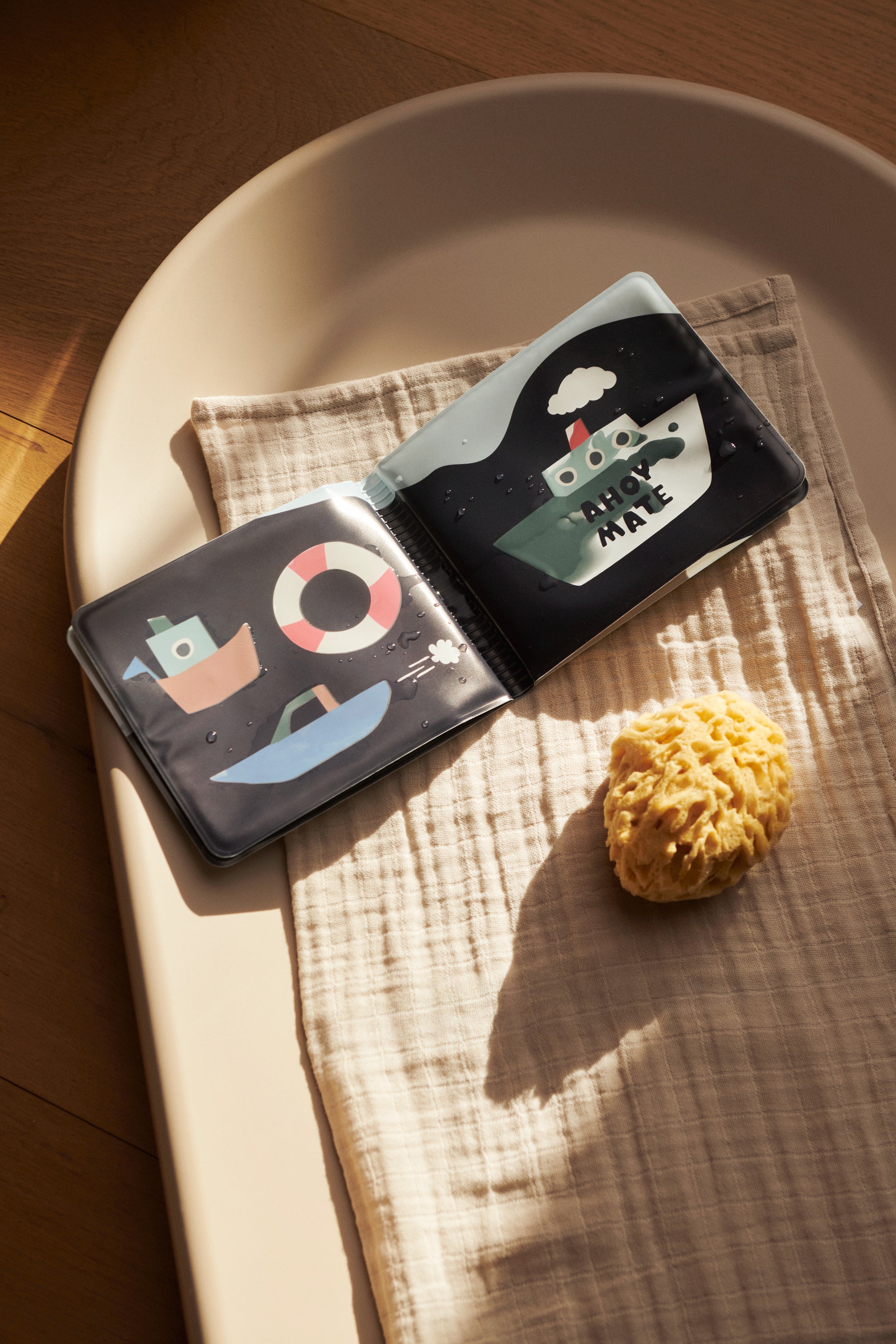 Rendez l'heure du bain encore plus spéciale avec le livre de bain imperméable Waylon, conçu pour divertir et impliquer les bébés et les tout-petits pendant qu'ils barbotent dans la baignoire. Plongez simplement le livre dans l'eau et votre enfant découvrira des créatures cachées et des illustrations sous les pages blanches.