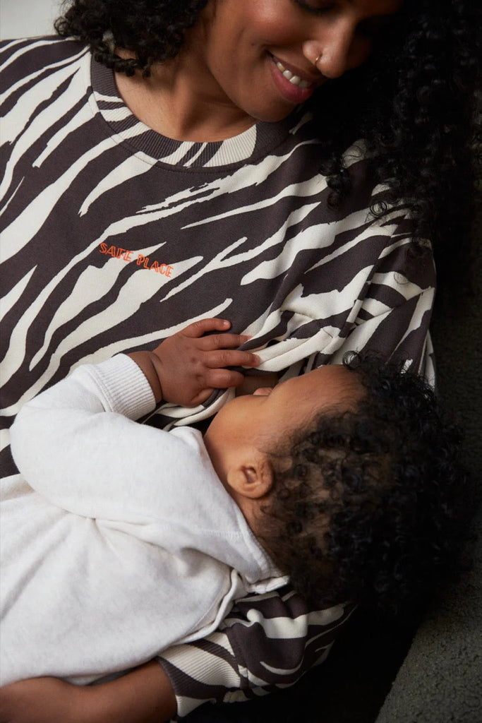 Pour ce sweat-shirt d’allaitement adapté à la grossesse, un brin loose, nous vous conseillons de prendre votre taille habituelle.