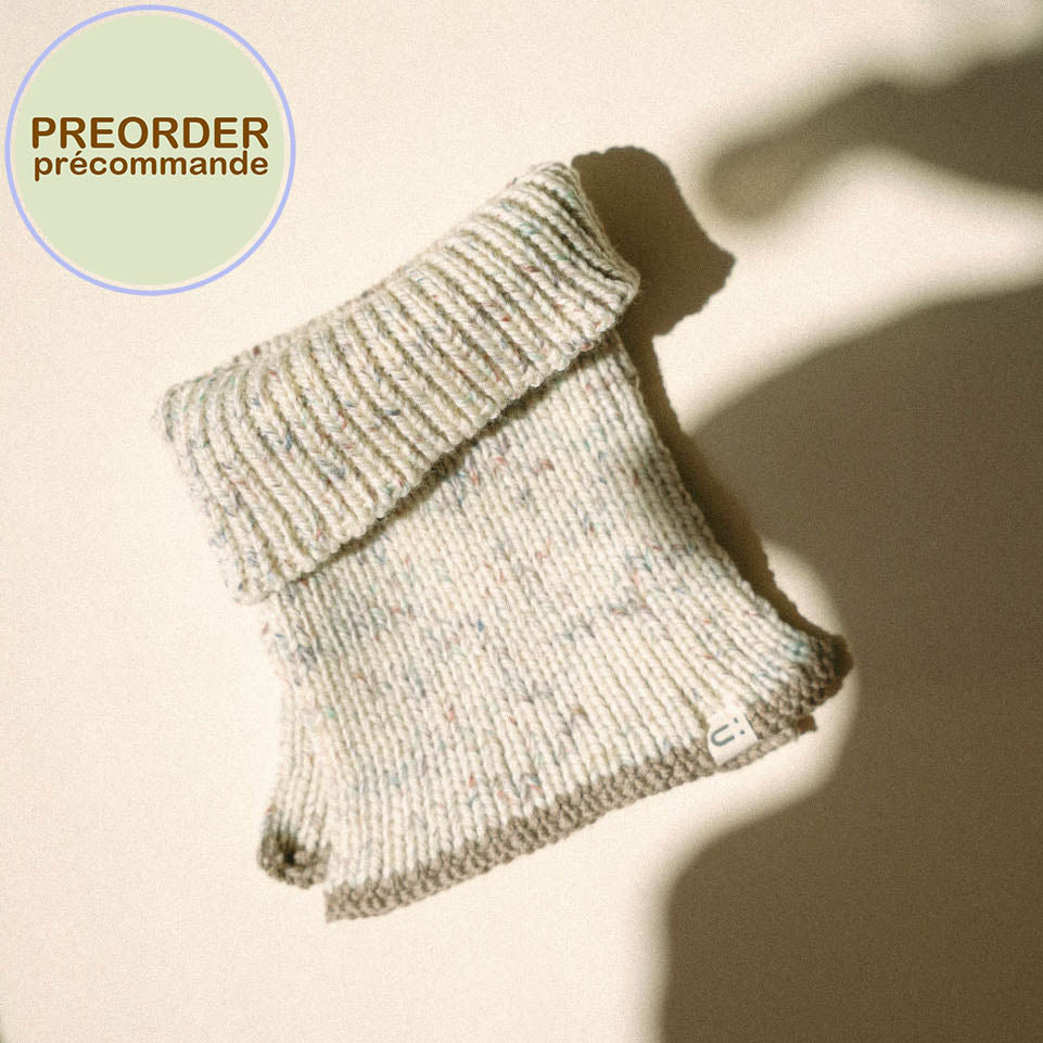 Il est muni d'un col montant ainsi que de 2 panneaux (un devant, un derrière). Ils tiendront au chaud votre ptit mosüs c'est garanti ! L'avantage de la laine mérinos c'est qu'elle régule la température et l'humidité, neutralise les odeurs, naturelle et écologique.