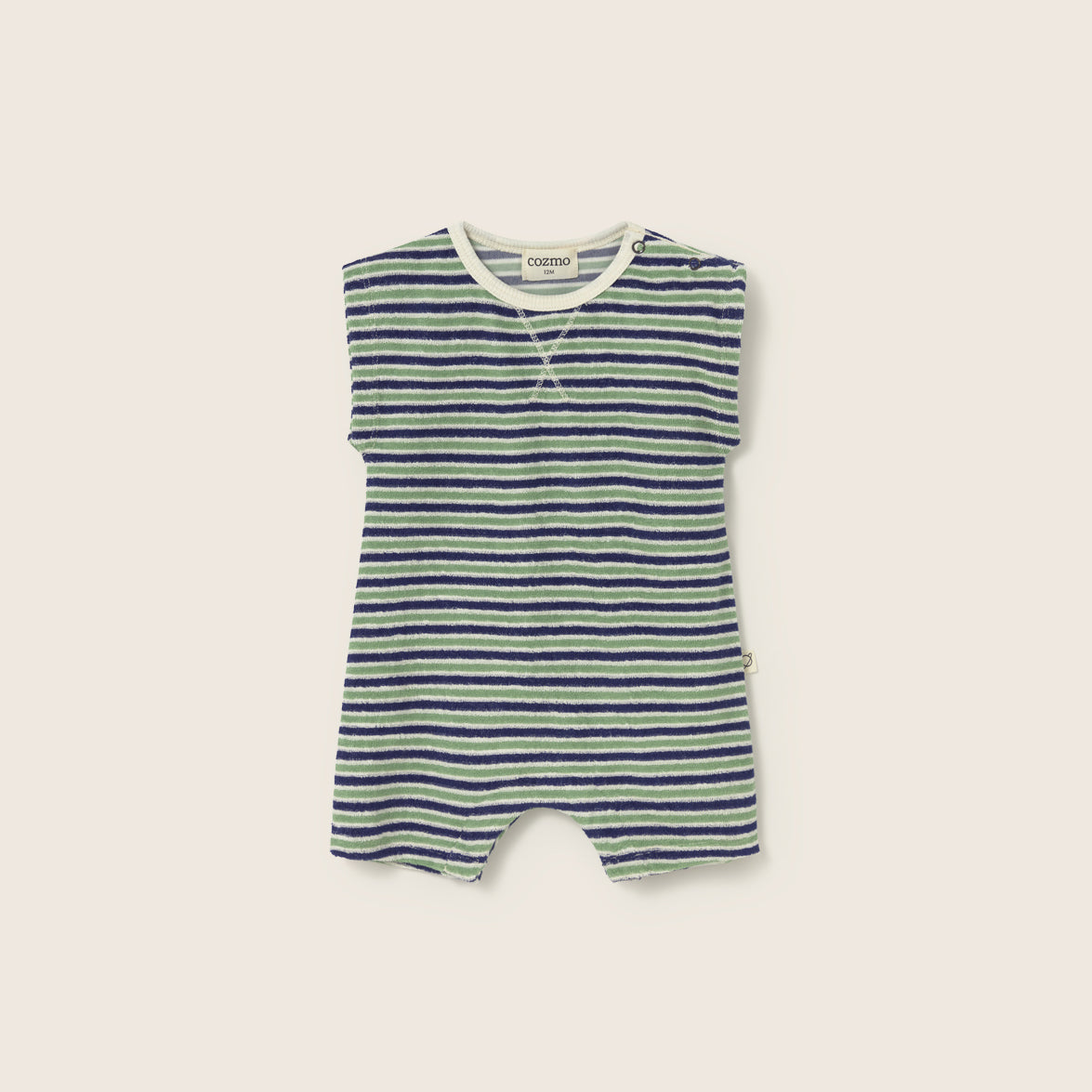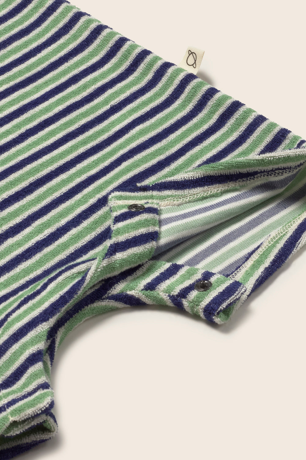 Une-pièce terry avec boutons pression à l'entrejambe.