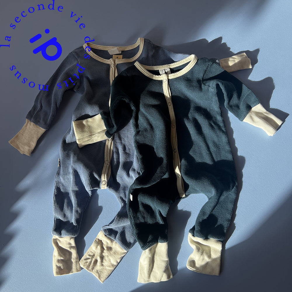 O'lou combinaisons gaufrées bleues | Fripé (0-12m)